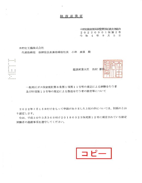 - 高圧ガス設備製造事業所の大臣認定試験者 管類の認定試験者認定